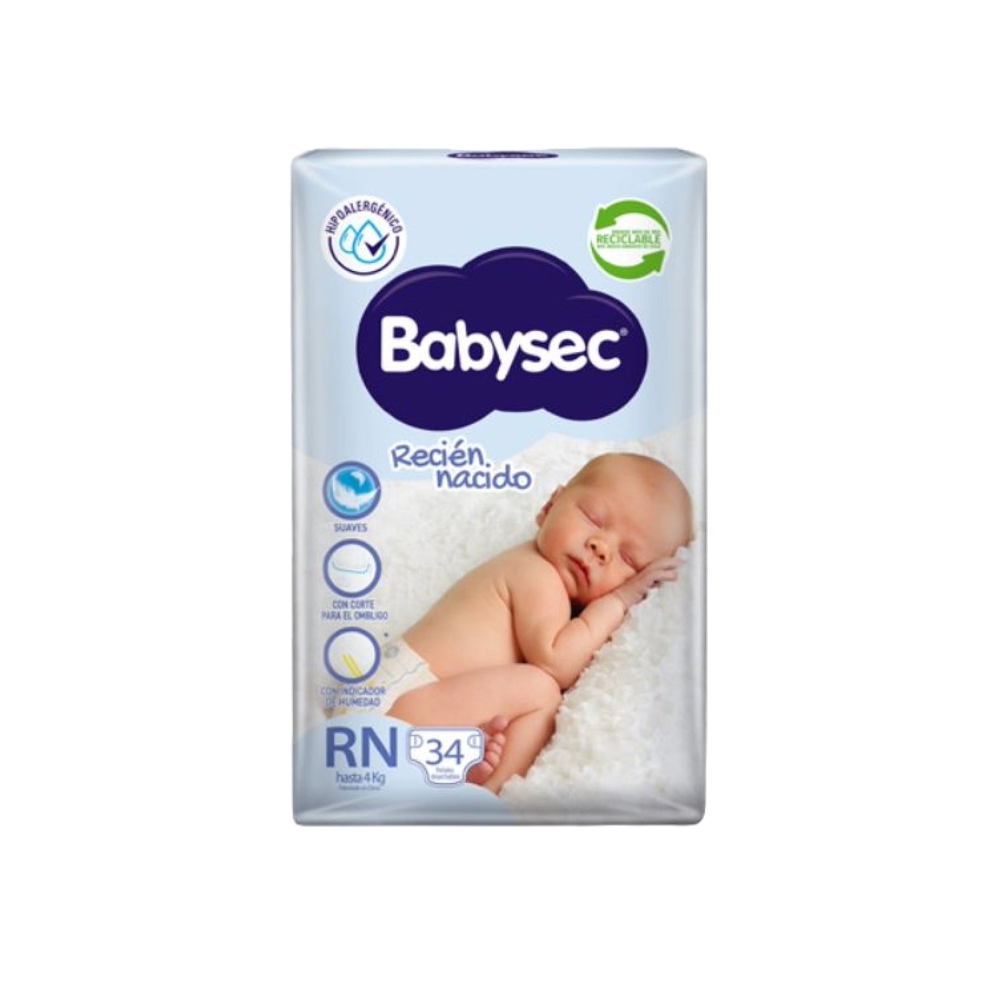 El pañal Babysec Recién Nacido cuenta con una cubierta suave y cubierta interna aperturada que protege otorgando mayor comodidad y cuidado a la piel de tu guagua, con indicador de humedad que cambia de color cuando el pañal está mojado. Pañal hipoalergénico y con corte para el ombligo, evita el contacto del pañal con el área umbilical. Hasta 4 kg.