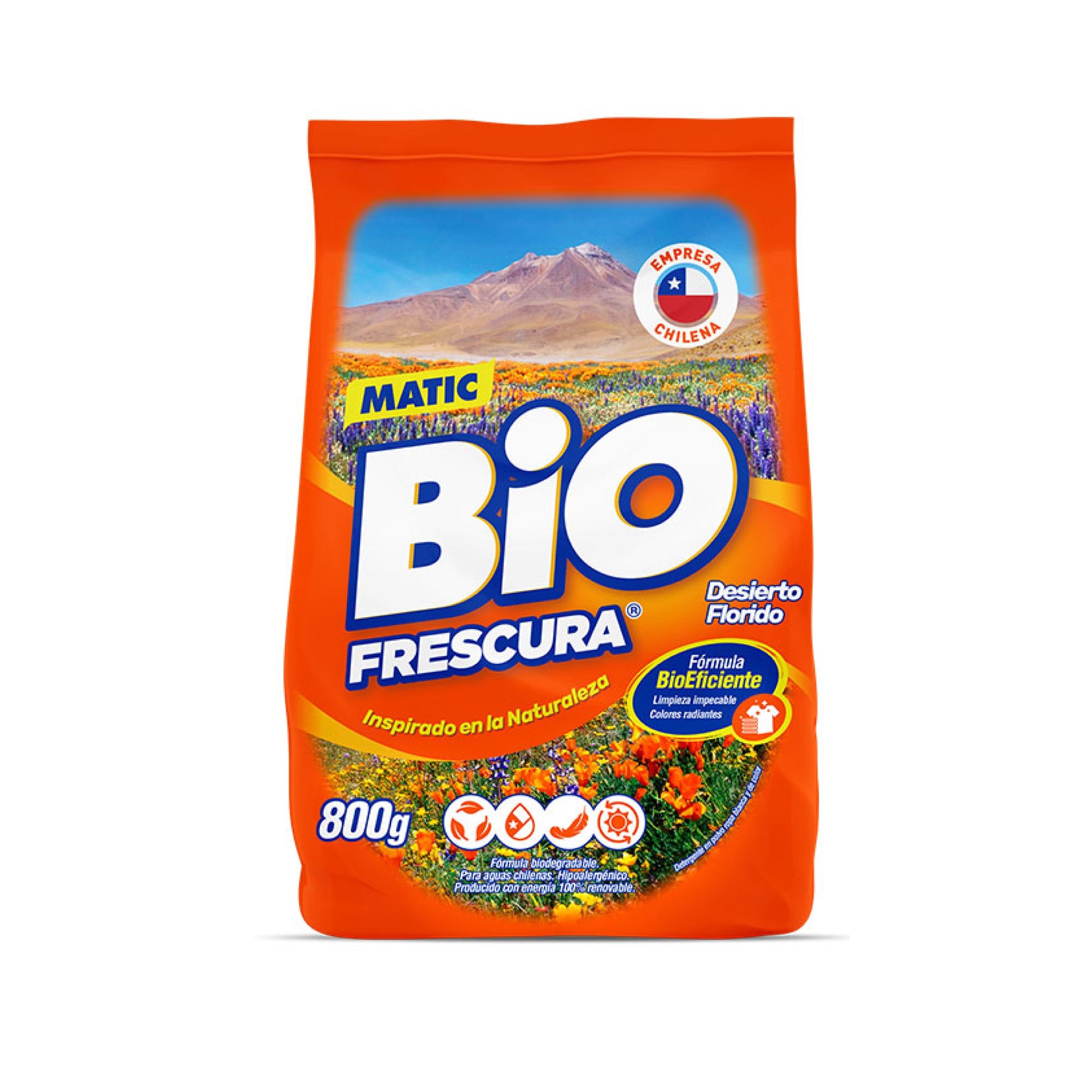 Bio Detergente en Polvo Desierto Florido ofrece una limpieza profunda con ingredientes biodegradables y una fragancia inspirada en la frescura y belleza del desierto florido. Con una capacidad de 800 gramos, es ideal para quienes buscan una solución eficiente y respetuosa con el medio ambiente para el cuidado diario de su ropa.