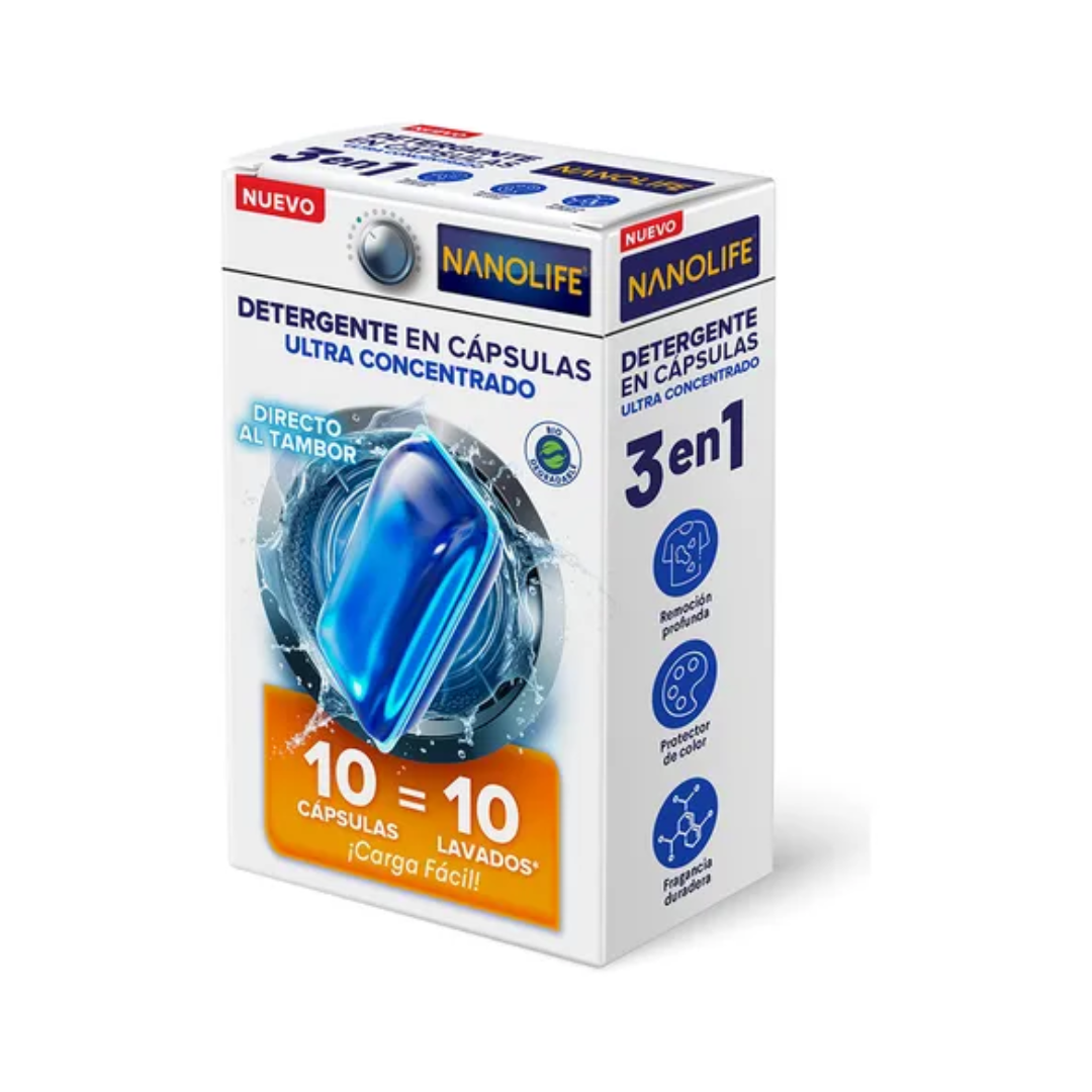 Nanolife Detergente En Cápsulas Poder 3 En 1 / 10 Unidades