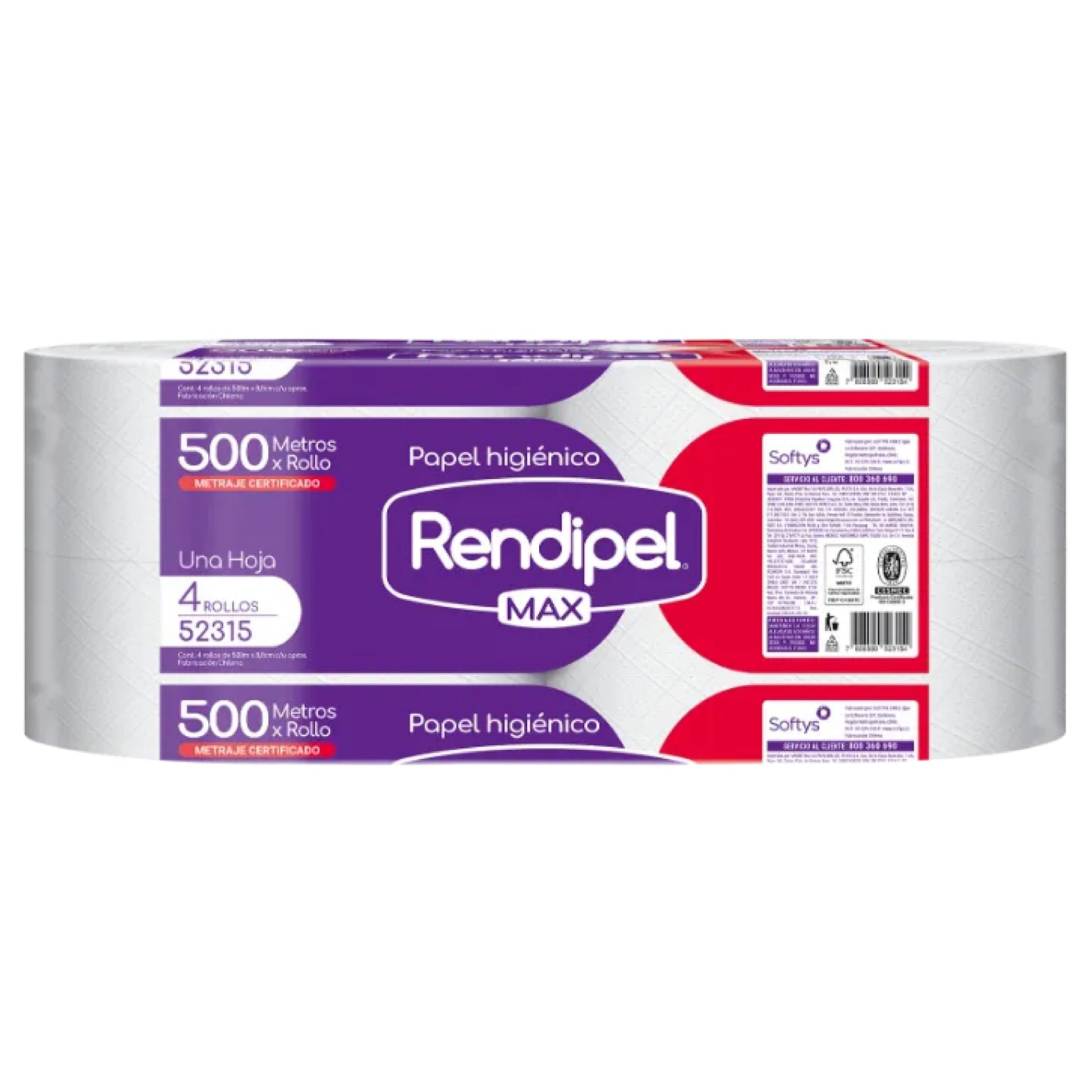Rendipel Papel Higiénico Industrial 500 Metros x 4 Rollos